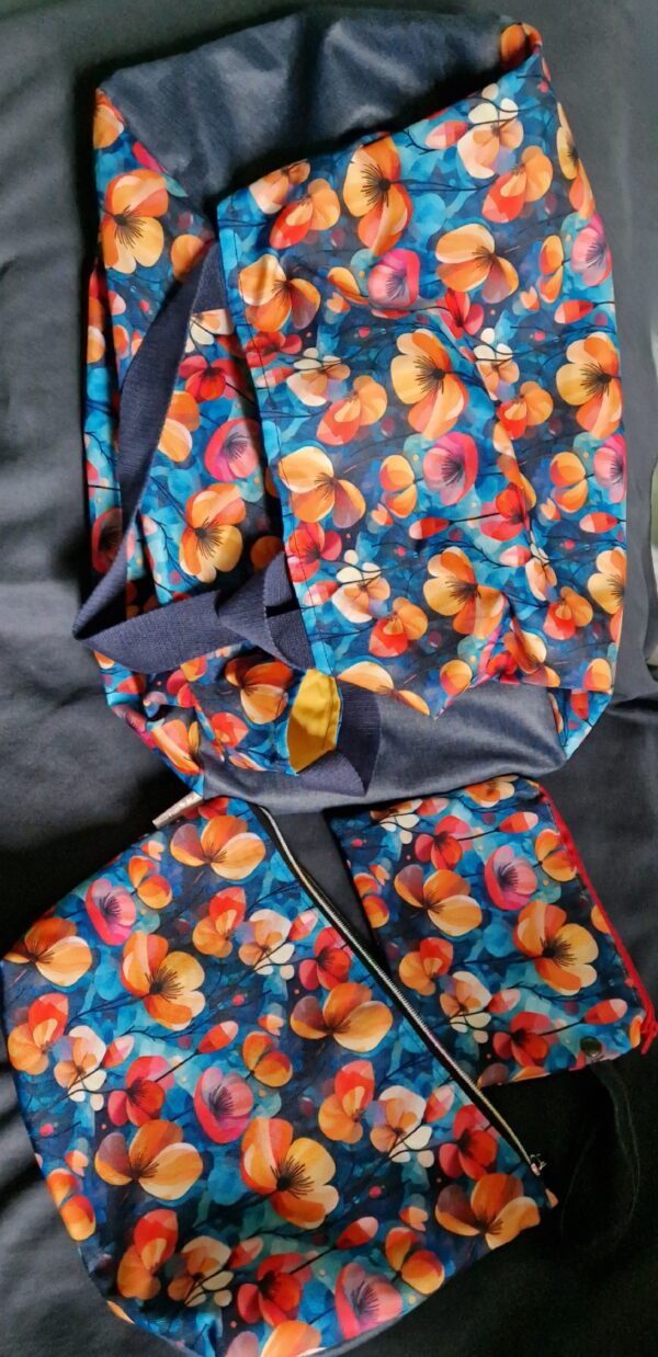 En tissu enduit imprimé de couleurs vives, cet ensemble pratique pour la plage sera votre compagnon pour les vacances.
