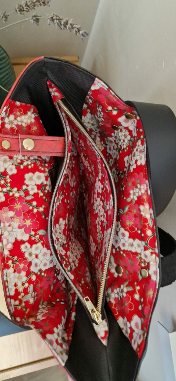Un air de féria pour ce sac cabas ! Le motif de la danseuse est en simili cuir, le dos du sac est en toile à sac. L’intérieur est en toile à sac et en tissu japonais. La pochette assortie et bien sur, les anses en cuir sont toujours là.
