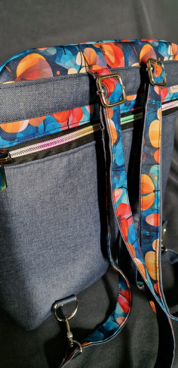 Des couleurs gaies et un tissu enduit habillent ce sac à dos malin.